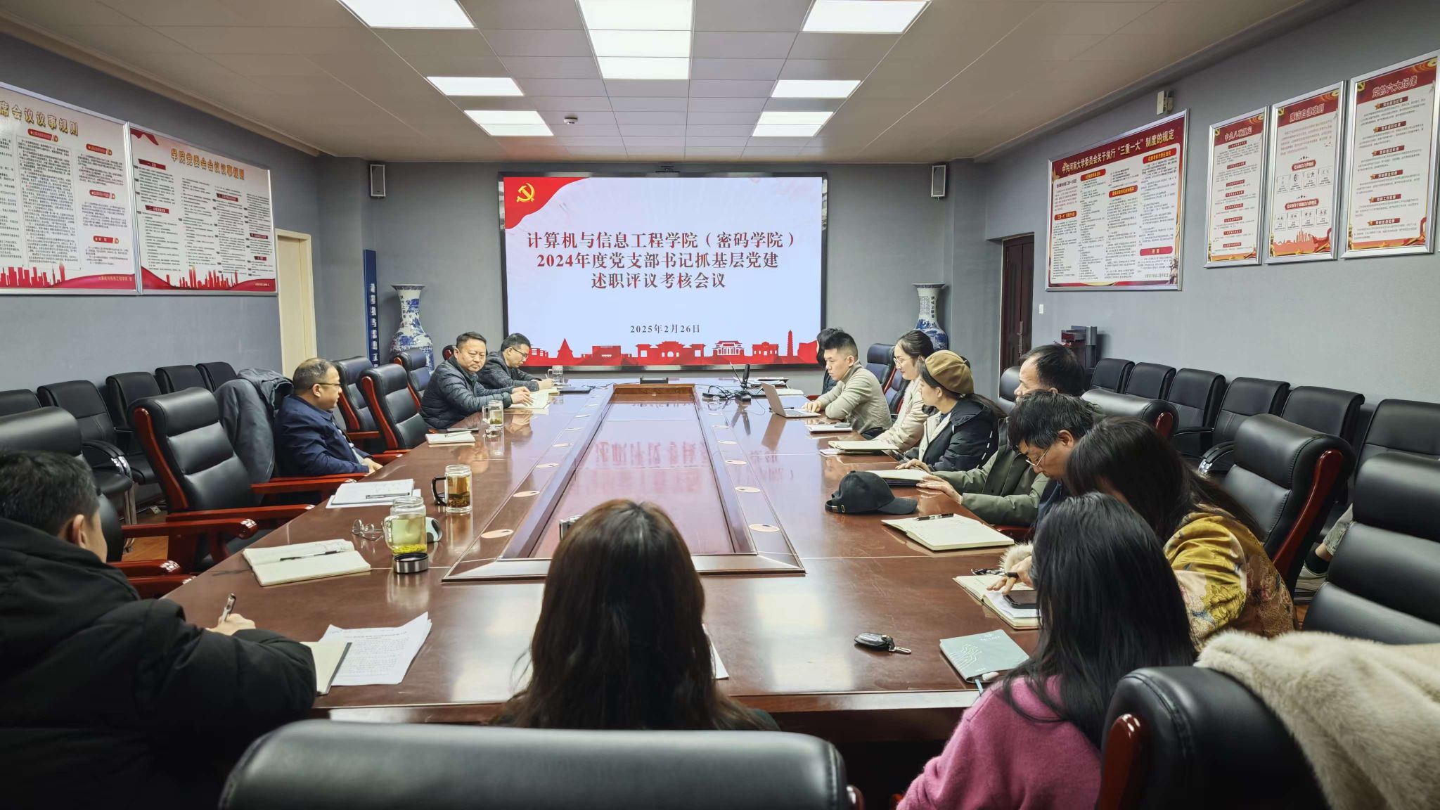 在302会议室召开2024年度党支部书记抓基层党建述职评议考核会议。学院党委委员、各党支部书记、党委办公室负责人和党员师生代表参会。会议由学院党委书记周志民主持。