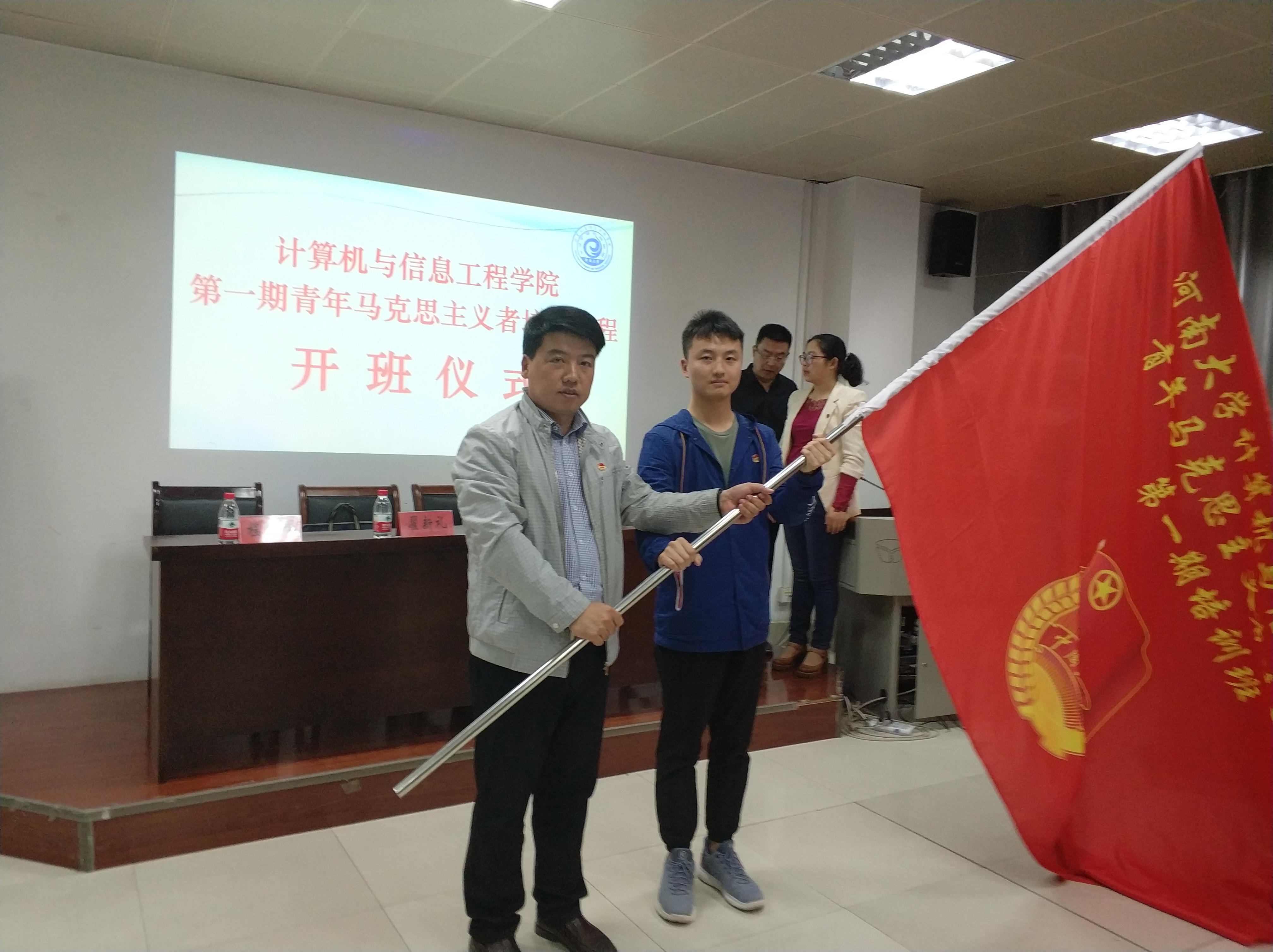 “青年马克思主义者培养工程”培训班纪律管理规定》,过硬的规定,必将打造过硬的品格,警醒每一位同学严格遵守班规,意识到自身责任所在。仪式进行第四项,院学生会团委副书记、青马班副班长王欣辉同学作为学生代表发言,为今后的学习生活对自己做出了严格要求与行为规范,说出了每一位青马班成员的心声。第五项是庄重的授旗仪式。由校团委书记翟新礼同志向学员代表授旗。仪式进行第六项,宣誓环节。由风月文学网