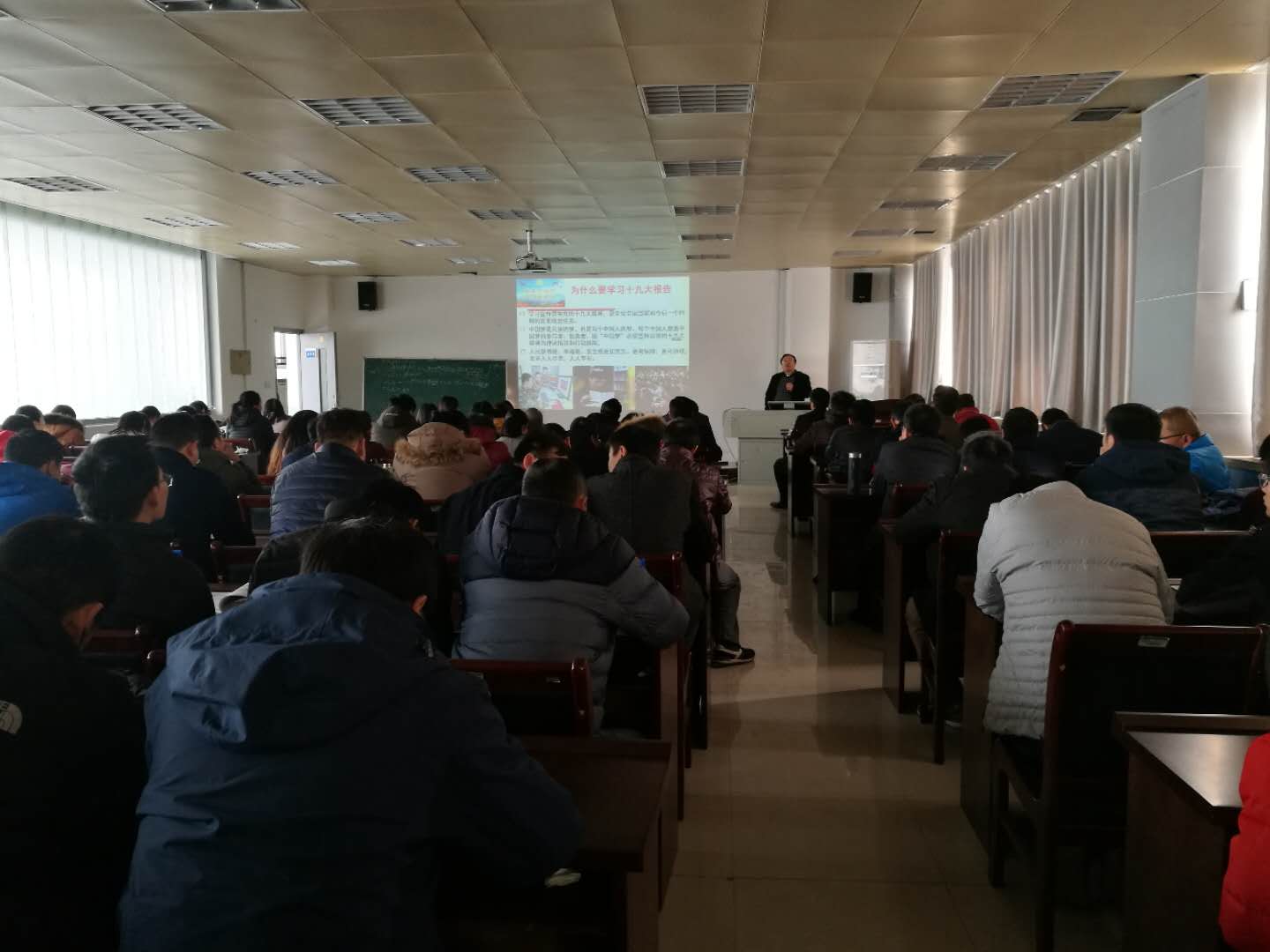 邀请校理论宣讲团成员,经济学院博士生导师李保民教授为全院师生作了“学习党的十九大精神”专题报告。学院全体老师和在校学生党员参加了报告会,学院党委副书记孔涛主持报告会。