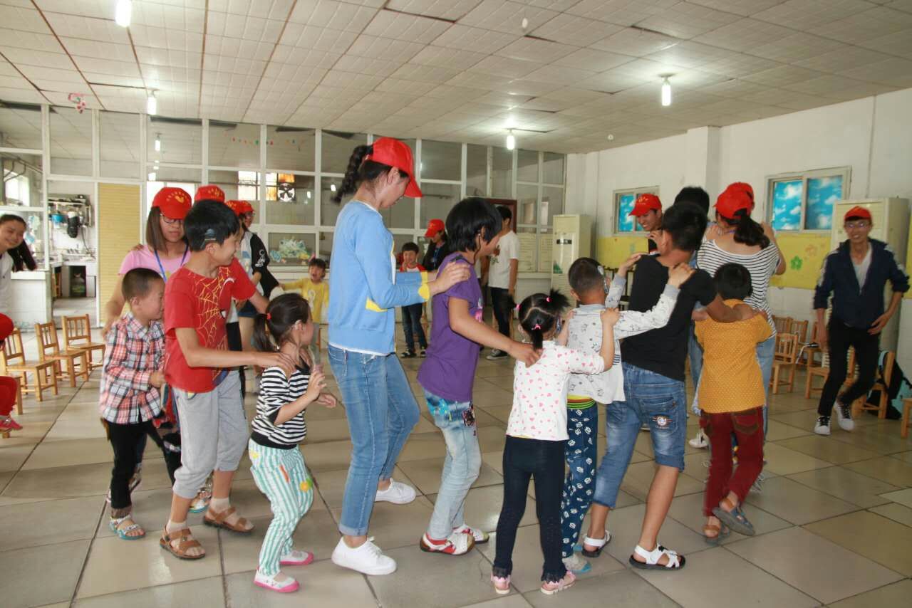 到达学校后,我们志愿者和孩子们相互配合一起上了一节绘画课。志愿者们在老师的指导下画出图案,由小朋友涂色。在涂色过程中不断的引导他们认识颜色、认识图画中的物体、让他们开口说话并纠正不准确的发音等等。画画丰富了他们的想象力,增强动手能力,使他们手脑心并用。上完课自然要做些游戏放松一下,志愿者便拿出先前准备的小游戏:影子游戏、捕鱼游戏。我们志愿者讲了游戏规则后耐心的引导,孩子们的接受能力也很强。游戏时,每个孩子都踊跃尝试,积极参加,赢了一大把一大把的糖块。孩子们感受到外界的温暖而开心,志愿者们也因为自己的付出而无比满足,每个人脸上都挂着笑容,欢笑声回荡在空中。我们志愿者还准备了“兔子舞”和小朋友一起伴随着音乐蹦蹦跳跳,全场的气氛十分融洽,也为我们的活动画上完美的句号。