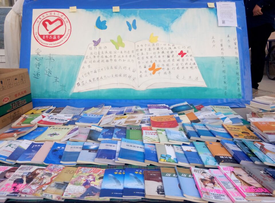 青年志愿者协会于5月13日至5月14日在东苑学生公寓进行了收书赠书的活动。如今活动已完美收官,取得了一致好评。据数据统计,本次活动捐书170余本,受赠者140余人,其中受赠院系包括计算机学院、护理学院、商学院、数学院、医学院、化工学院、国教院、经济学院、哲管院和物理学院。