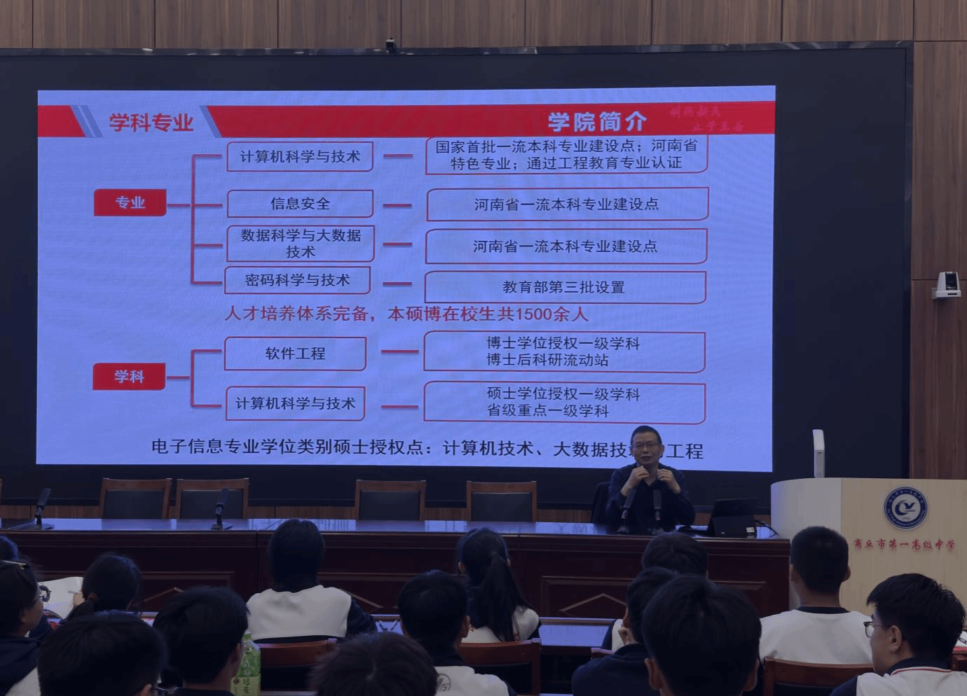 (密码学院)副院长葛强、团委负责人丛震宇一行到商丘市第一高级中学、商丘市高级中学开展招生工作,面向在校高中生分别举办了内容丰富、贴近前沿的宣讲活动。本次活动围绕风月文学网