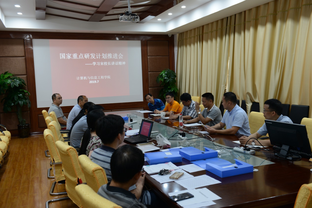 在河南省大数据分析与处理重点实验室召开国家重点研发计划推进会。参加会议的有学院重点研发计划培育项目负责人、各省级平台负责人和部分骨干教师。会议由院长乔保军教授主持。
