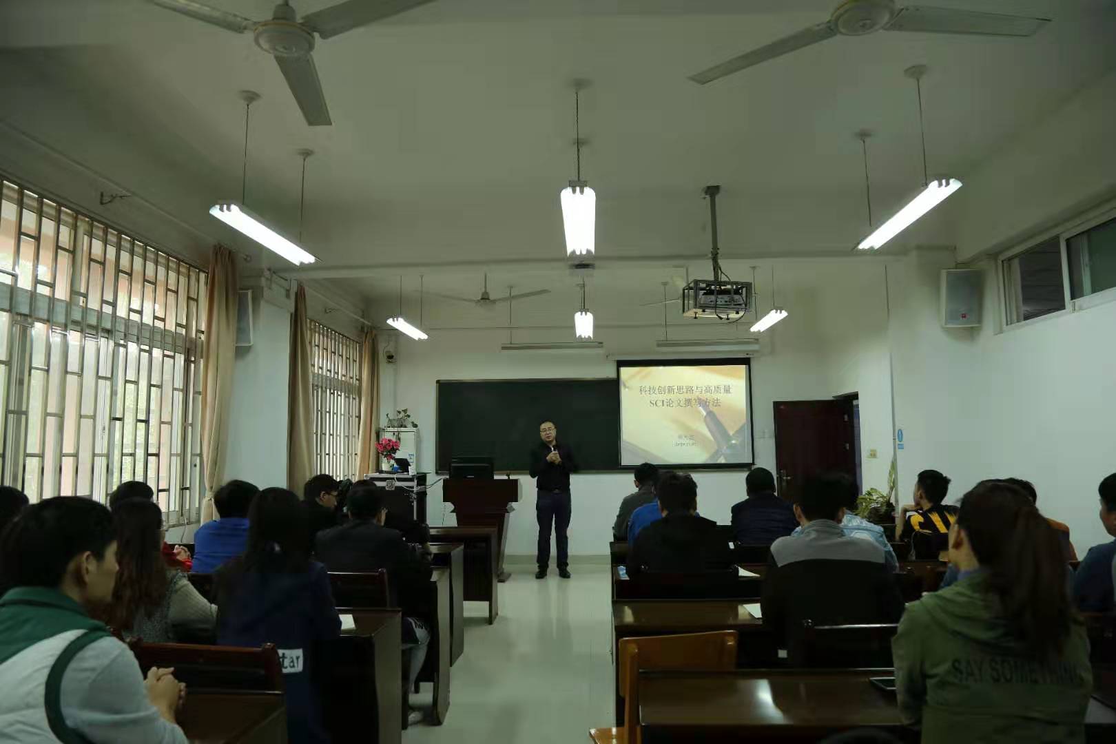 韩教授向学生分享了自己二十多年的科学研究和管理经历,以及十年SCI论文撰写的经验和体会。讲座期间,韩教授通过自己切身经历和体会,向学生具体的讲述了研究生如何进行科研创新,如何阅读文献,什么是高质量论文,如何撰写高质量论文,如何论文创新以及研究生日常管理等。特别是针对学生进行创新问题,韩教授从几个方面,用具体例子详细讲解了如何进行创新,激发了学生的创造力;韩教授以自己为例,为师生讲解了阅读文献的重要性,以及剖析文献应注意的事项;韩教授以问题为导向,引导学生提升知识储量,讲解了撰写高质量SCI论文具备的要点等等。在师生互动环节,学生向韩教授请教了学习中遇到的科研问题,韩教授分别进行了耐心和细致地解答。最后,胡振涛做了总结发言,并代表院领导对韩教授表示了真挚的感谢。在场师生表示,聆听此次报告受益匪浅,对自身科研工作具有重要借鉴作用。