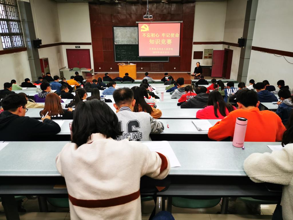 学生党支部举行了“不忘初心、牢记使命”专题知识竞赛。本着夯实党章党规,强化党的基本理论的原则,大赛组织者精心设计、组织、汇总了“不忘初心、牢记使命”专题的应知应会的知识点,最终编辑形成知识竞赛试题。10月31日知识竞赛正式开始,各个学生党支部积极响应,全员参与,在学院党委书记吕冰和副书记柯杨的共同监督下,经过严格笔试产生优胜党员。最终,2017级的赵守才、2016级的徐博伟、段聪聪、刘丽摘得桂冠,荣获一等奖,学生党支部“不忘初心、牢记使命”专题知识竞赛圆满结束。