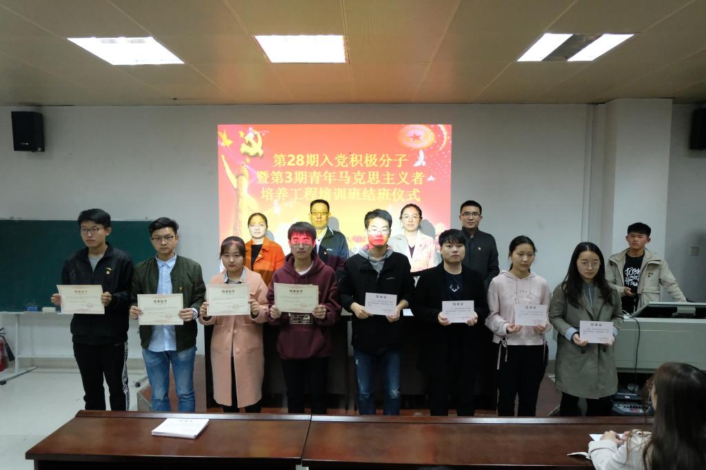 第二十八期入党积极分子暨第三期马克思主义者培养工程培训班结业仪式于学院603会议室顺利举行。学院党委副书记柯杨、党委办公室主任魏丹、研究生与科研办公室主任郑珊珊、团委副书记程前帅、全体学员参加了结业仪式。会议由魏丹主持。