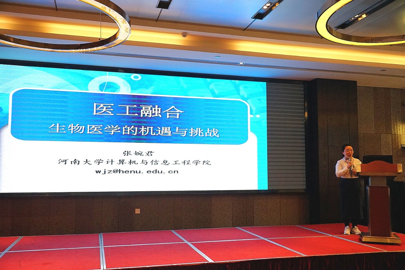 遥感大数据团队教师张婉君博士前往参会并作邀请报告。张婉君博士以“医工融合-生物医学的机遇与挑战”为题,从生物医学图像的国内外发展情况出发,以视盘定位、白内障检测、糖尿病性视网膜病变区域标记等实际应用案例详,详细介绍了生物医学与计算机相关算法相融合面临的机遇和挑战。利用图像处理算法可以帮助研究者更好的分析显微镜下细胞的极化形态和分布,为医生和生物学者节省大量的宝贵时间。深度学习技术的发展为疾病预测提供了可能性。