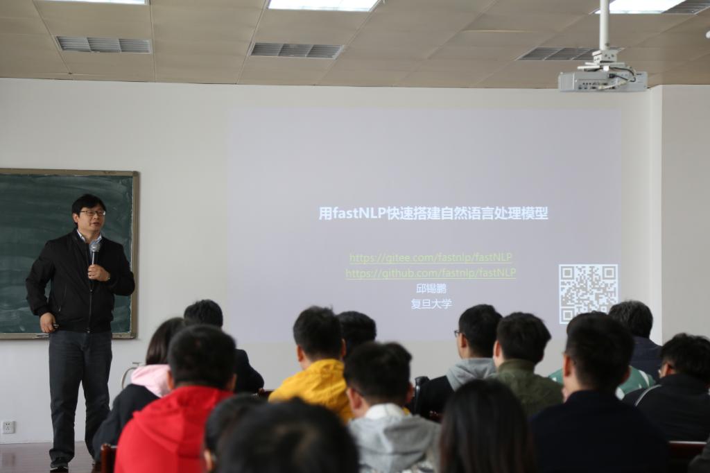 邱锡鹏教授做了题为“用FastNLP快速搭建自然语言处理模型”的学术报告,报告主要介绍了由复旦大学自然语言处理实验室研发的轻量级的NLP处理套件FastNLP。邱锡鹏由简单的中文分词及词性标注引入,剖析了人工智能下自然语言处理的方法及面临的难题,并简要展示了FastNLP的语言处理功能实现。重点对文本分类、序列标注、指代消解、摘要、fitlog可视化可交互调参及现下主流工具做了介绍。
