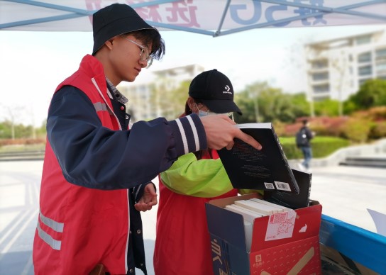 活动当天,志愿者们通过摆设展板、向路过的同学发放宣传页进行进一步的宣传。当不知情的同学驻足观望,志愿者们立刻上前积极介绍此次活动,如果稍有动心的同学希望了解更多细节,志愿者们便为其耐心讲解活动规则;当参与活动的同学携书而来,志愿者们热情接过,细心地检查图书并为他们兑换换书券,有条不紊地帮助同学们完成“书籍漂流”。随着活动的进行,越来越多的同学携带自己的旧书前来摊位,活动现场你来我往,以书会友,分享阅读心得,好不热闹!不少参与活动的同学表示,这个活动既拓宽了旧书的价值,又能减少自己购买新书的经济负担,让书籍成为心与心沟通交流的桥梁,是一个有意义的活动。