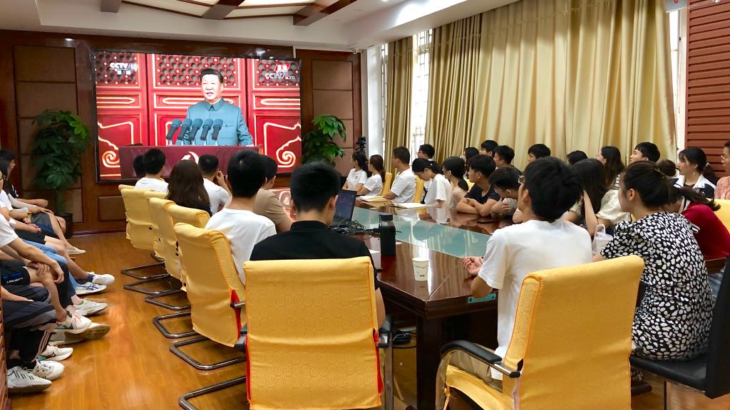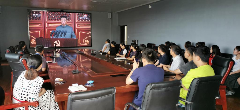 师生通过网络、电视、手机等方式观看大会直播,学习习近平总书记重要讲话精神,为党庆生,共同见证这个重大而庄严的日子。