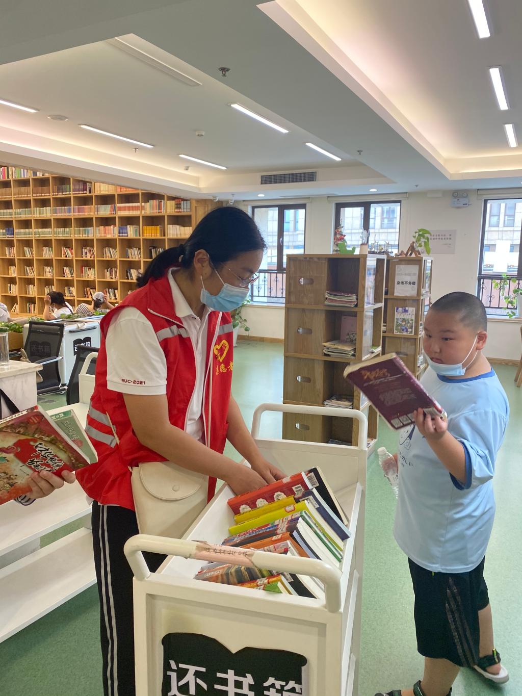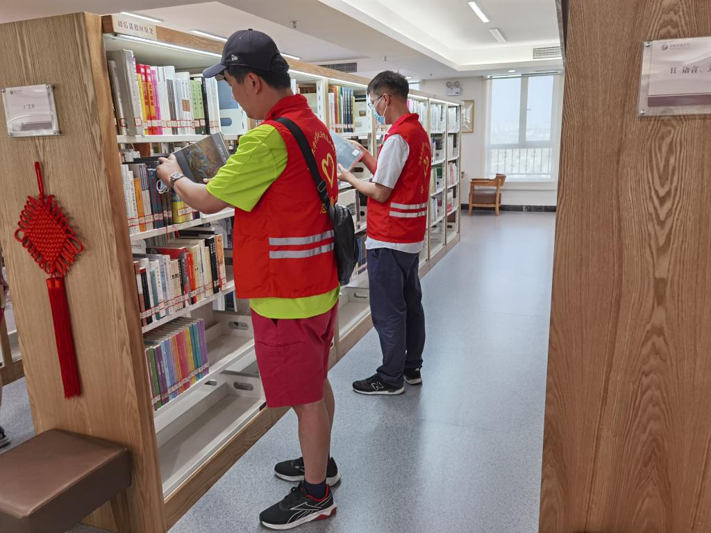 计算机系教工党员和教师前往开封新区图书馆进行志愿者服务。
