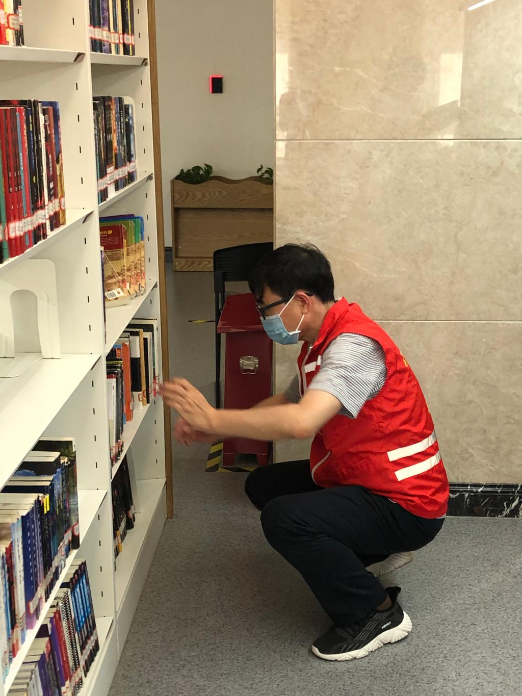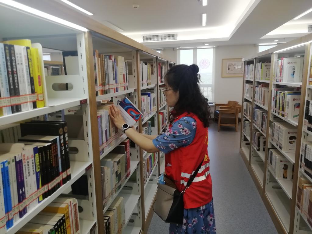 大家认真倾听了图书馆工作人员讲解如何将还书车里的书按编号放回书架。在经过简单的培训之后,图书馆工作人员将老师们分到不同楼层进行服务。老师们不断穿梭于还书车和书架之间,对编号、看类别,将读者还回的图书放入准确放置。大家满怀热情、不辞辛苦,快速地完成了图书阅读室的整理和还书上架的工作,受到工作人员的好评。