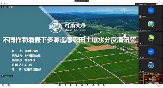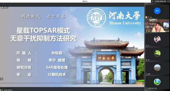SAR信息处理团队首次邀请和组织全部由校外专家组成的专家组对研究生开题答辩进行指导,邀请的5位校外专家包括河南省科学院地理研究所王超主任/副研究员、河海大学陈嘉琪教授、河南省农业科学院农业经济与信息研究所王来刚主任/副研究员、中国科学院空天信息创新研究院陆萍萍副研究员和南一江副研究员。团队导师组李宁、郭拯危、闵林等3位教授和毋琳、赵建辉、黄亚博、杨会巾、舒高峰等5位副教授,以及团队在读研究生全程参会旁听。