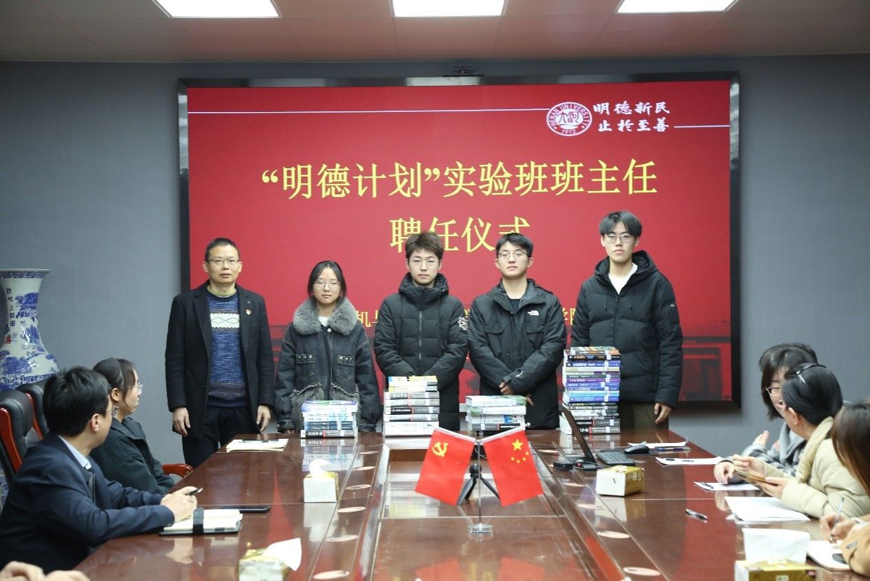 “明德计划”实验班班主任队伍的正式成立。学院将进一步深化落实立德树人根本任务,着力打造班主任与辅导员合力育人机制,健全完善“三全育人”工作格局,提升育人实效,助力学生成长成才。