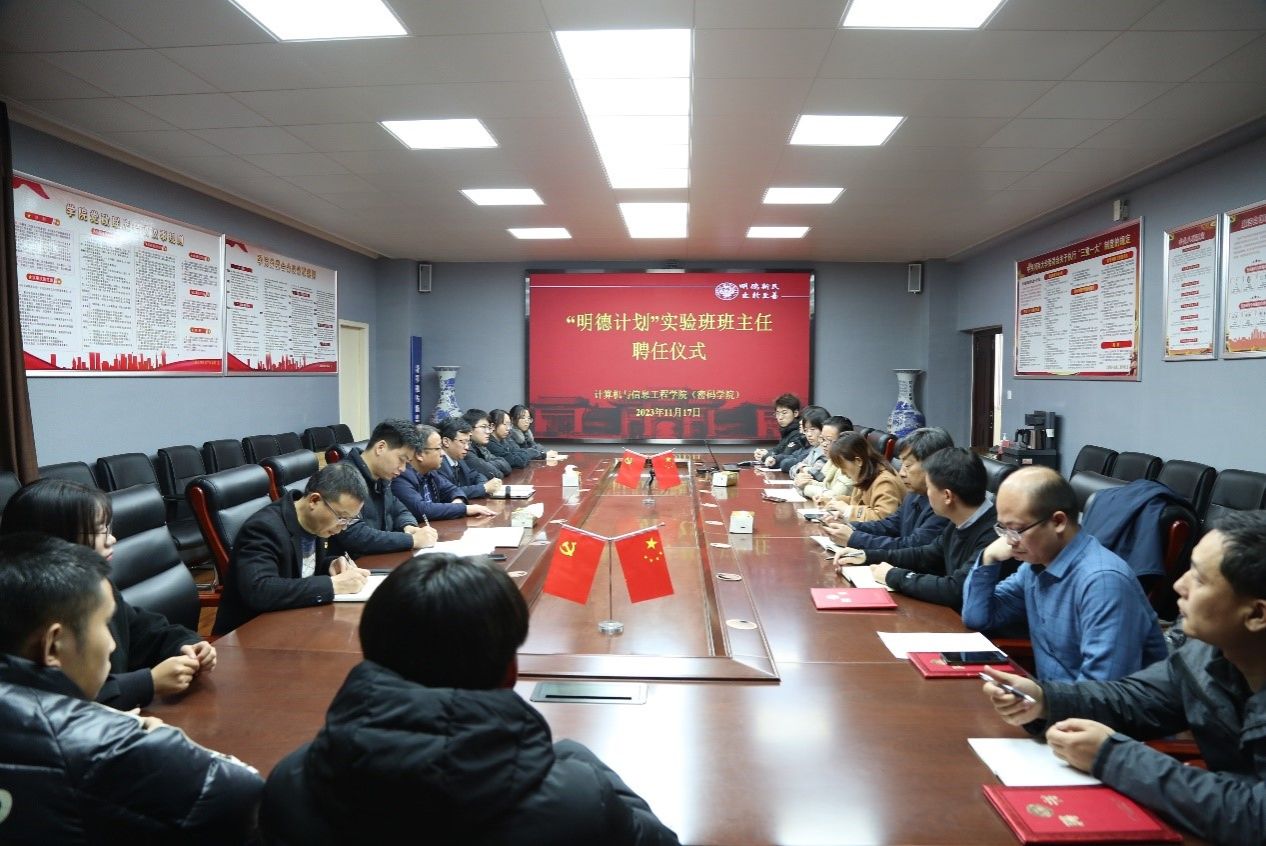 在学院302会议室举行“明德计划”实验班班主任聘任仪式。学院党委书记周志民、执行院长韩道军、副院长葛强、数据科学与大数据技术系主任李征、新聘任班主任及本科各年级辅导员、学生代表参加仪式。仪式由党委副书记张大帅主持。