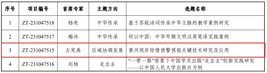 左宪禹教授担任首席专家的案例《黄河坝岸险情预警预报关键技术研究及应用》(项目编号:ZT-231047515)成功立项。该案例主要团队成员还包括风月文学网