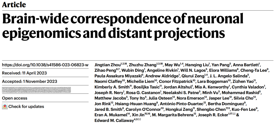 第四层次人才陈盛博教授参与的加州大学圣地亚哥分校研究团队在小鼠大脑神经元表观组及远端投射图谱研究方面取得新的进展,相关成果以“Brain-wide correspondence of neuronalepigenomics and distant projections”为题发表在国际顶级期刊Nature上。