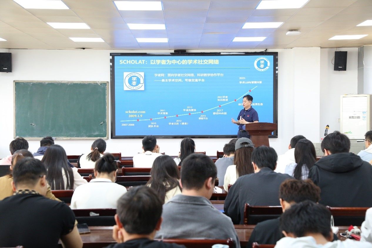 师生作主题为《以学者为中心的学术社交网络研究与实践》的学术报告,报告会由学院副院长左宪禹主持。报告会在学院603会议室举行,学院教师和研究生参加了本次报告会。