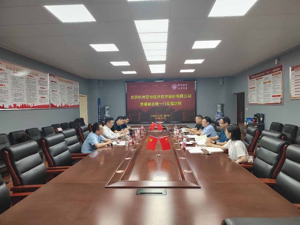 就有关共建联合实验室、课题合作、科技成果转化和校企协同育人进行洽谈交流。学院执行院长韩道军、副院长任小金、左宪禹,信息安全系主任杜晓玉、支部书记张磊等在学院三楼会议室与来访客人进行了座谈交流。