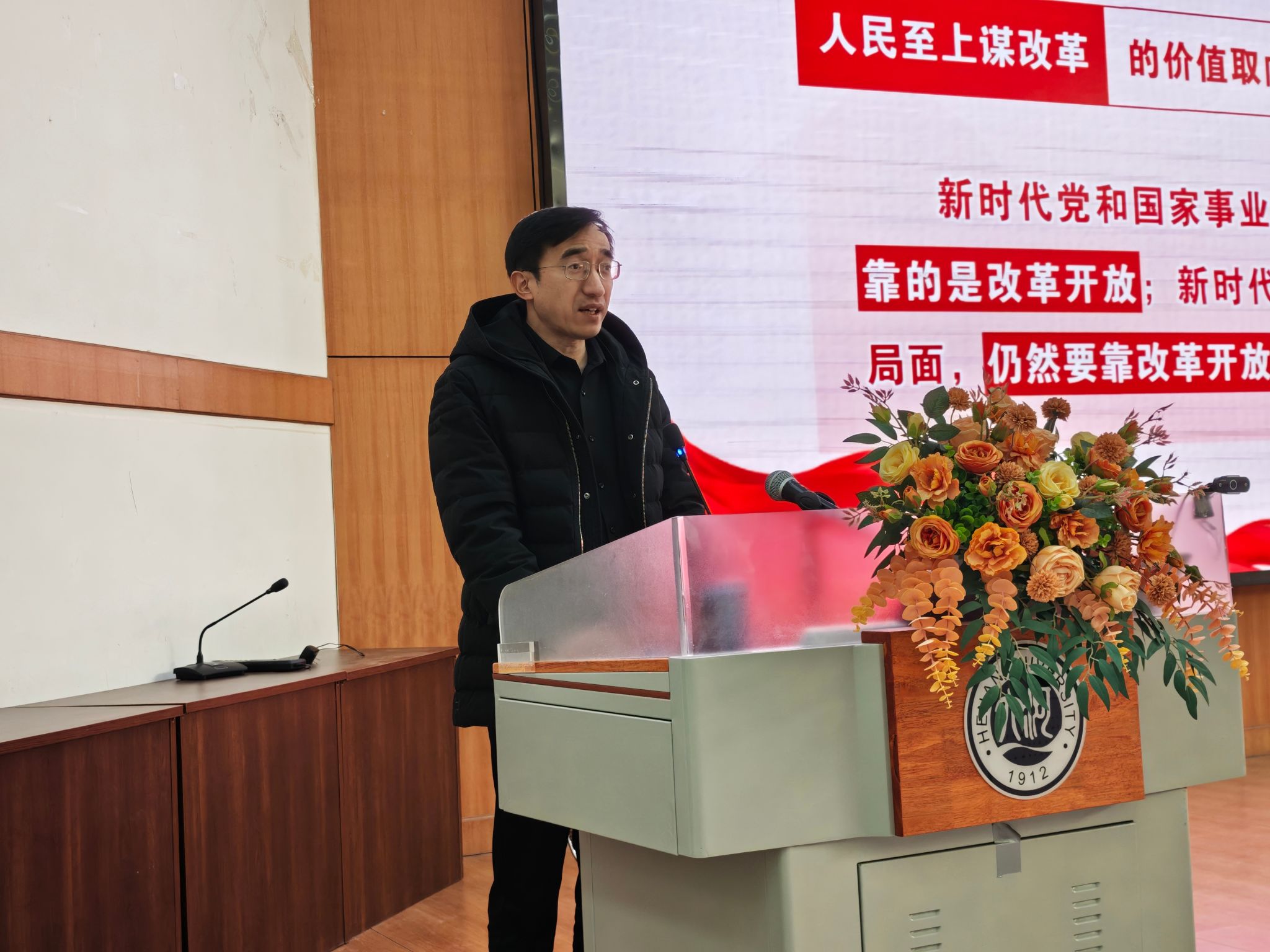 王鹏飞首先为大家讲解了全会的主题和意义,随后带大家解读了《中共中央关于进一步全面深化改革 推进中国式现代化的决定》提出的进一步全面深化改革重要举措,最后就如何抓好全会精神贯彻落实提出建议。