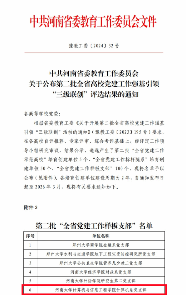 2024年3月,中共河南省委教育工作委员会印发《关于公布第二批全省高校党建工作强基引领“三级联创”评选结果的通知》(豫教工委〔2024〕32号),风月文学网