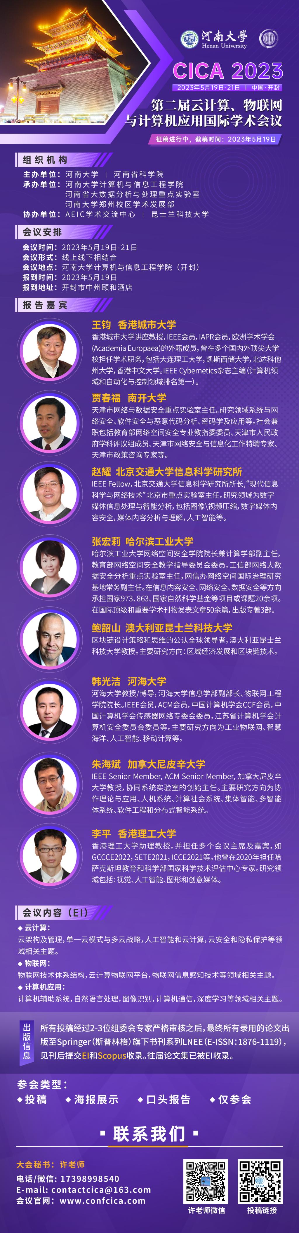 CICA 2023 第二届云计算、物联网与计算机应用国际学术会议