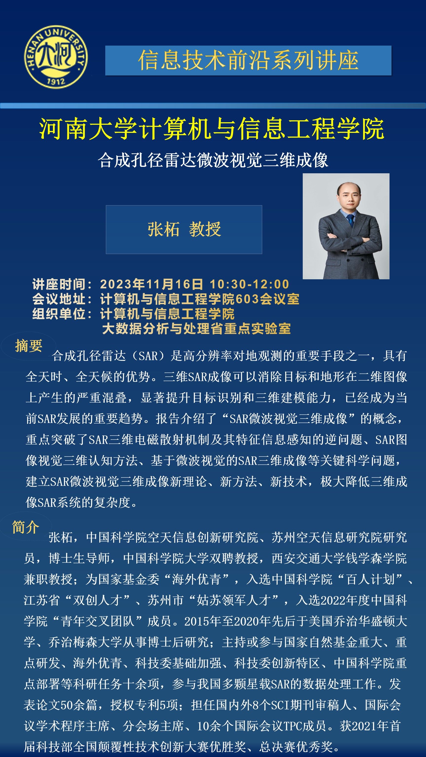 张柘:合成孔径雷达微波视觉三维成像(时间:11月16日)