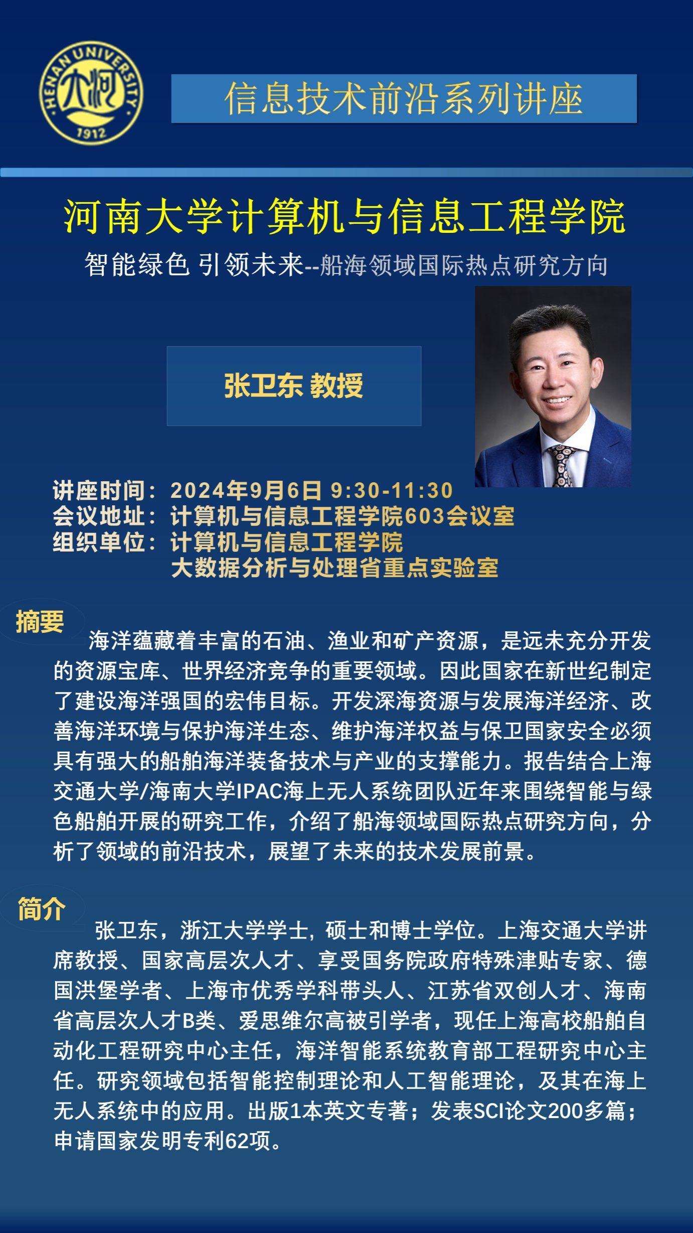 张卫东:智能绿色 引领未来--船海领域国际热点研究方向(时间:9月6日)