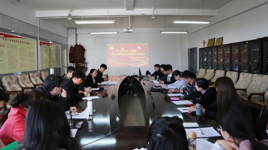 315日,研究生第一党支部在院302室召开2018年度组织生活会暨民主评议党员会。组织生活会以学习贯彻落实《中国共产党支部工作条例(试行)》和习近平新时代中国特色社会主义思想为主题,深入查摆支部在政治建设、履职尽责、作风建设方面存在的问题。组织生活会由支部书记郑珊珊主持,支部全体党员参加。