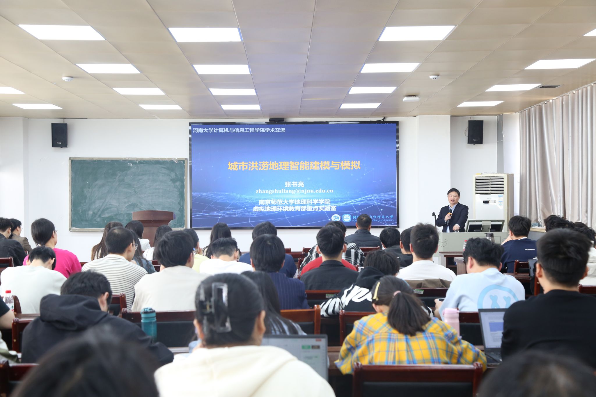 师生作主题为《城市洪涝地理智能建模与模拟》、《从地理信息系统到AI赋能的地理智能系统》学术报告,报告会由学院副院长左宪禹主持。报告会在学院603会议室举行,学院教师和研究生参加了本次报告会。