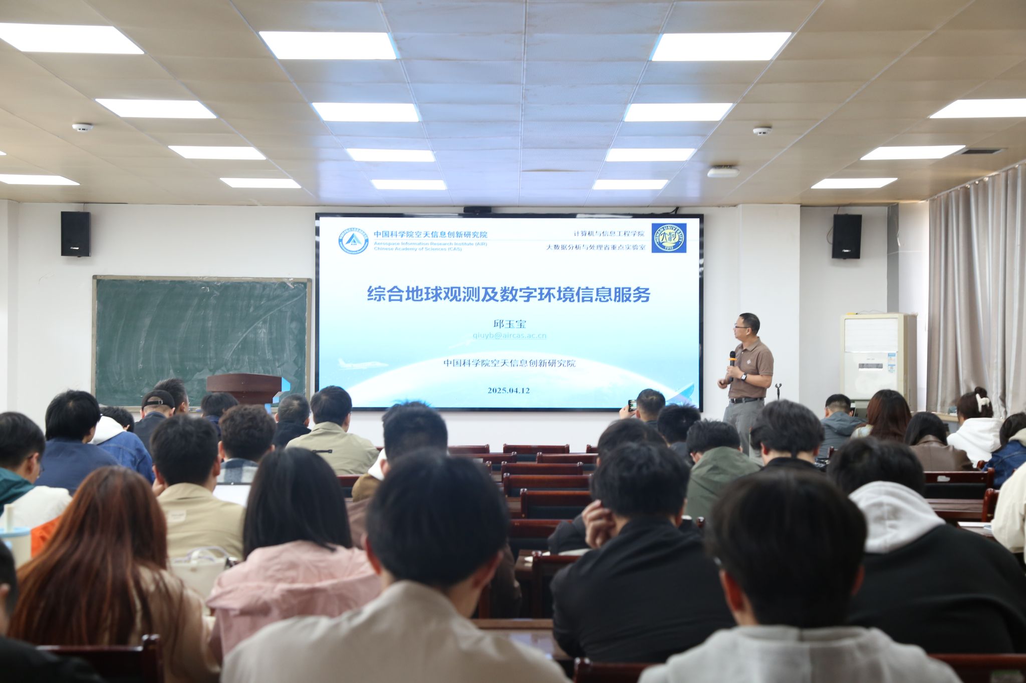 在报告会上,邱玉宝阐述了综合地球观测的发展理念及地球观测组织在数据,特别是围绕高山和极地环境时空数据的增值研发,以及面向全民地球智能的下一代发展所包含的基于AI的重构、预报和知识发现等。随后,邱玉宝分享了在构建面向服务的数字环境信息服务及可持续发展研究方面的最新成果,为现场师生提供了宝贵的学术见解。