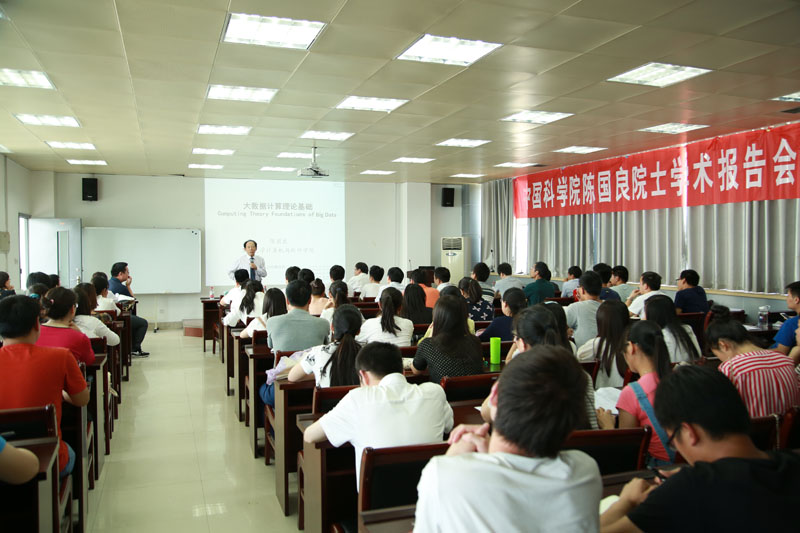 报告会上,陈国良院士以大数据时代为背景,从计算机科学讲起,以计算理论为基础,面向大数据的可解问题(BD-Tractable:BDT),讲述了确定图灵机计算问题和非确定图灵机问题,针对这两个问题,分析了并行计算和交互计算的方法,并着重阐述了多项式低阶优化这一大数据核心问题。报告会后,陈国良教授从大数据理论的角度对师生提出的问题进行了解答和交流。