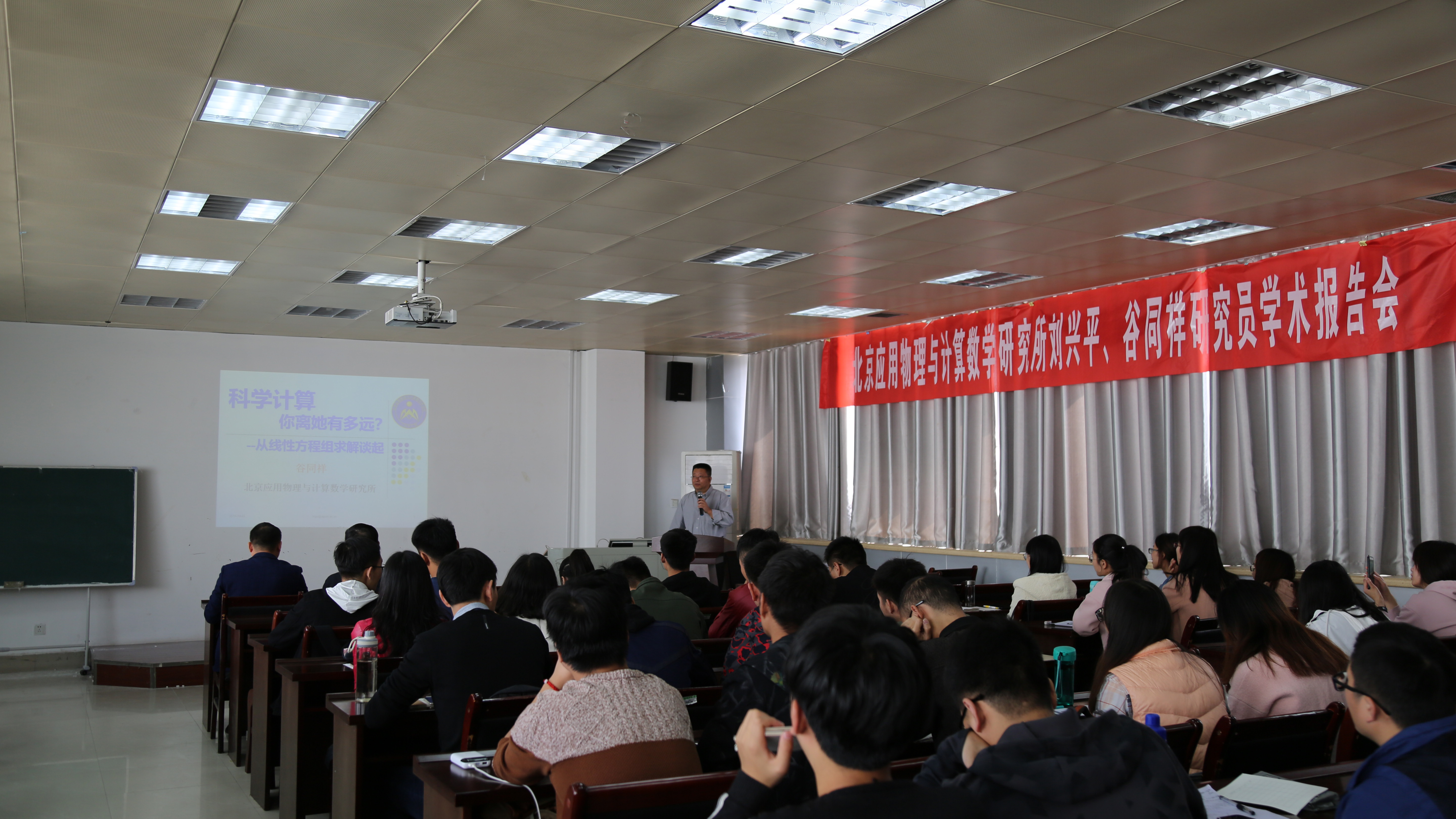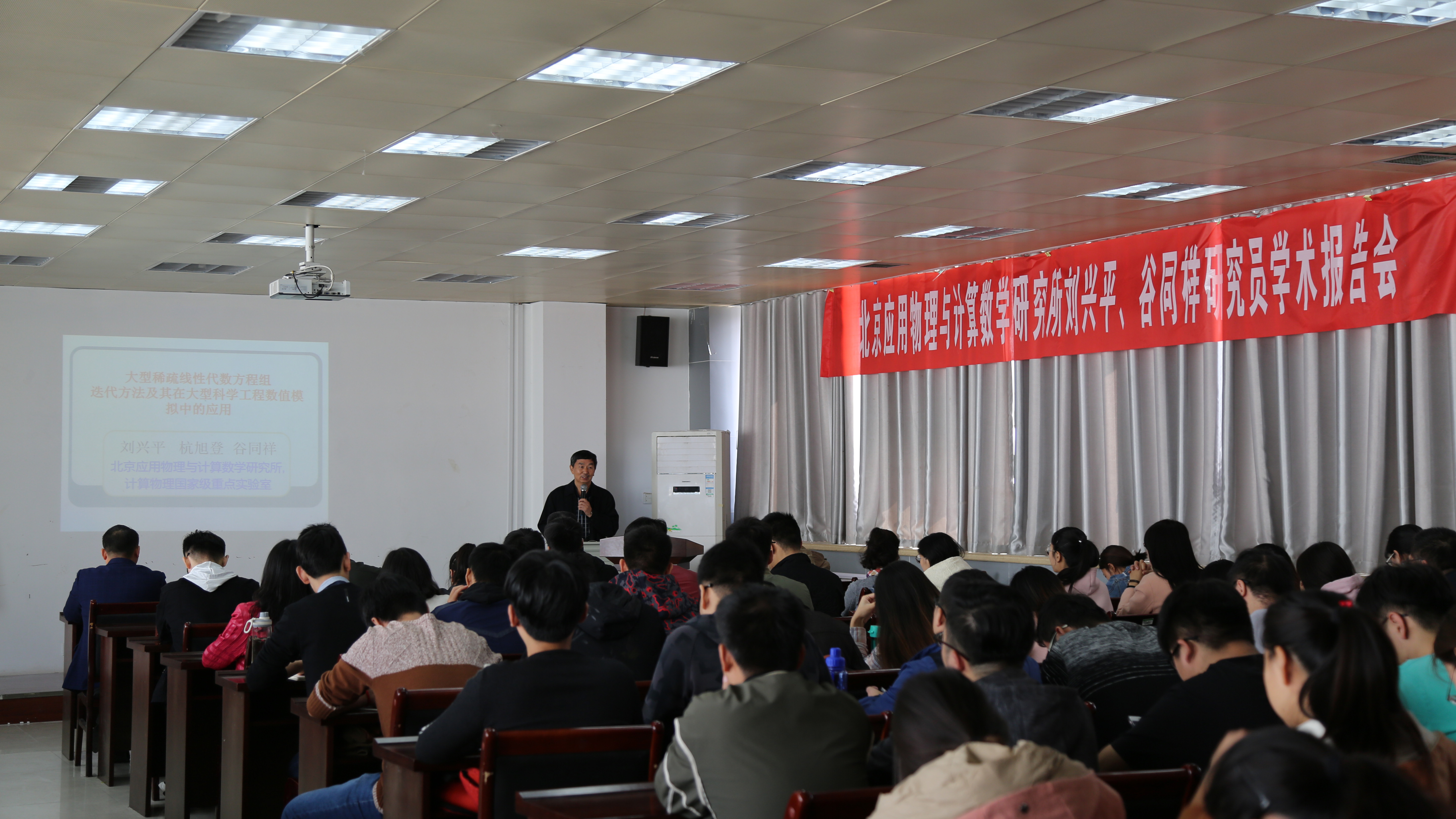 报告中,刘教授首先结合自身多年的研究经历,讲述了大型稀疏线性代数方程组求解算法研究的意义和动力。然后分别从物理背景、数值算法、模拟结果三个方面阐述了数值模拟算法的重要性。最后,刘教授将他所在研究团队在辐射流体力学数值模拟过程所取得的部分结果向现场师生进行了展示,同时展望了型稀疏线性代数方程组求解下一步需要解决的难点。谷教授讲述了科学计算的重要性,并针对科学计算在数值模拟领域所处的重要地位,分别从我国对科学计算在项目资金支持、高性能计算平台研制,以及计算科学人才培养三个方面进行了讲解,并和在场师生分享了如何步入“科学计算殿堂”的一些经验。会后两位教授针对现场师生提出的问题进行了详实的解答。此次学术报告内容充实,讲述过程精彩纷呈,与会师生受益匪浅。