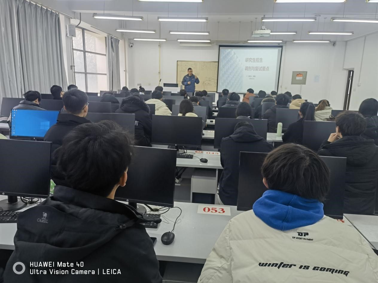 学院副院长葛强教授围绕复试前的准备事项、复试面试技巧、复试过程中的注意事项、复试调剂流程及常见问题等方面给考研学生进行了细致的讲解。同时结合自己多年参与研究生复试工作经验,给同学们分享了一些实用的临场应变技巧。并对同学们提出的问题进行了认真讲解。辅导活动收到了良好效果,同学们纷纷表示收获颇丰,不仅了解了复试调剂的相关知识和技巧,还感受到了学院领导老师对同学们的关爱和关心。
