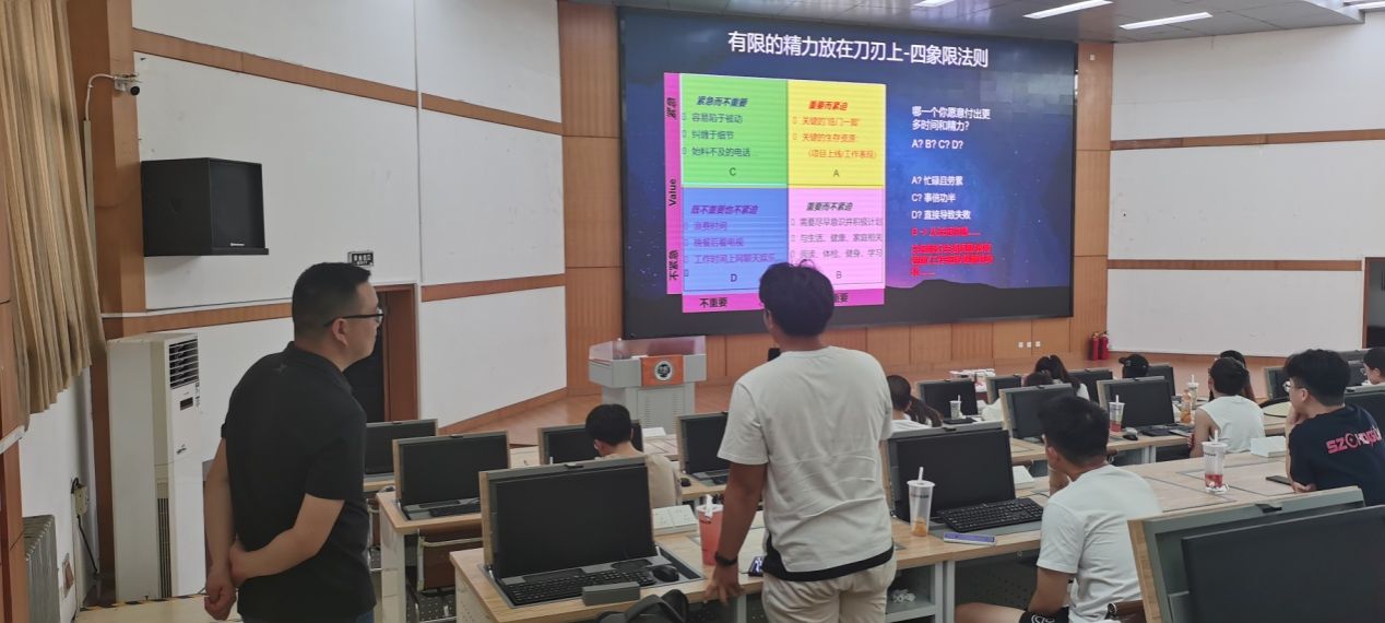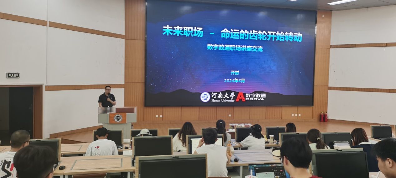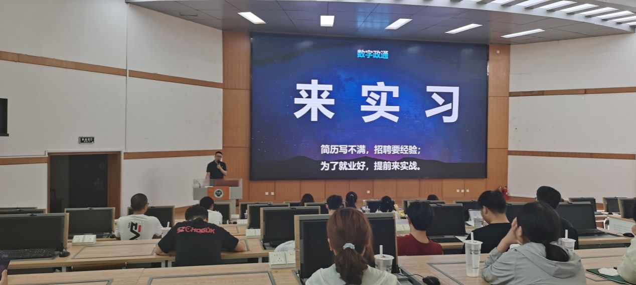 在201机房举办校企交流就业讲座,数字政通公司校企合作经理胡威为学院大二和大三的本科生分享了题为:未来职场-命运的齿轮开始转动的职场交流讲座。本次讲座旨在为广大同学提供实习、就业方面的宝贵经验,帮助同学们更好地规划未来。