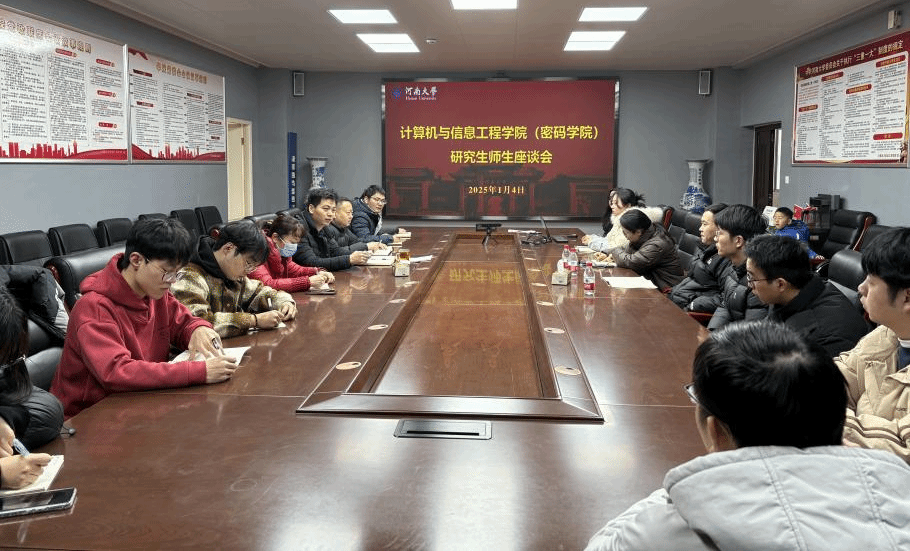 (密码学院)在学院302召开了研究生师生座谈会,围绕教育培养、日常管理、安全教育、学习生活、就业帮扶等议题展开深入交流与探讨。副院长左宪禹、导师代表、辅导员以及各年级学生代表参加座谈会。座谈会由党委副书记张大帅主持。