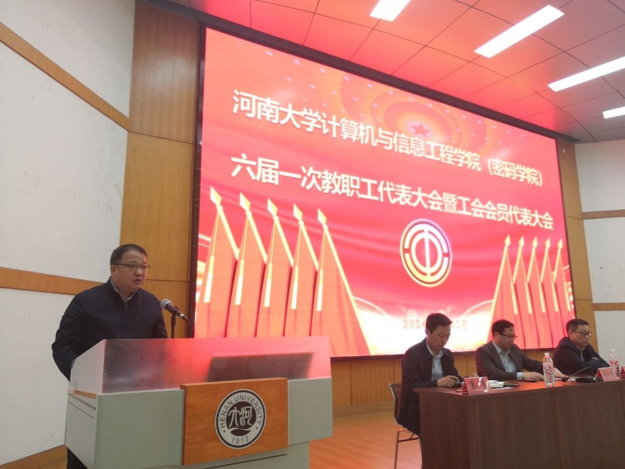 大会第一阶段,执行院长韩道军以《新起点 新征程——为实现学院高质量发展接续奋斗》为题作大会报告,全面回顾了2023年学院在党的建设、学科建设、科学研究、人才培养模式、师资队伍建设、国家化交流等方面取得的成绩和经验,分析了新时期学院发展形势、特别是“国家双一流”“河南省双航母”战略部署带来的重大机遇和挑战,明确提出“适应新时代新工科建设新要求”的理念,并从以高质量党建引领事业新发展、提升服务质量和提高服务保障、提高人才培养质量、加快学科建设、提升科学研究水平、加强人才队伍建设、加强国际交流与合作等几个方面对2024年工作做出整体部署。他指出,面对新形势新要求,学院将继续以习近平新时代中国特色社会主义思想为指引,落实学校“国家双一流”“河南省双航母”战略部署,以新质生产力发展为契机,以新工科建设为核心,发挥信息学科优势,抢抓机遇,奋力开启学院高质量发展新征程。