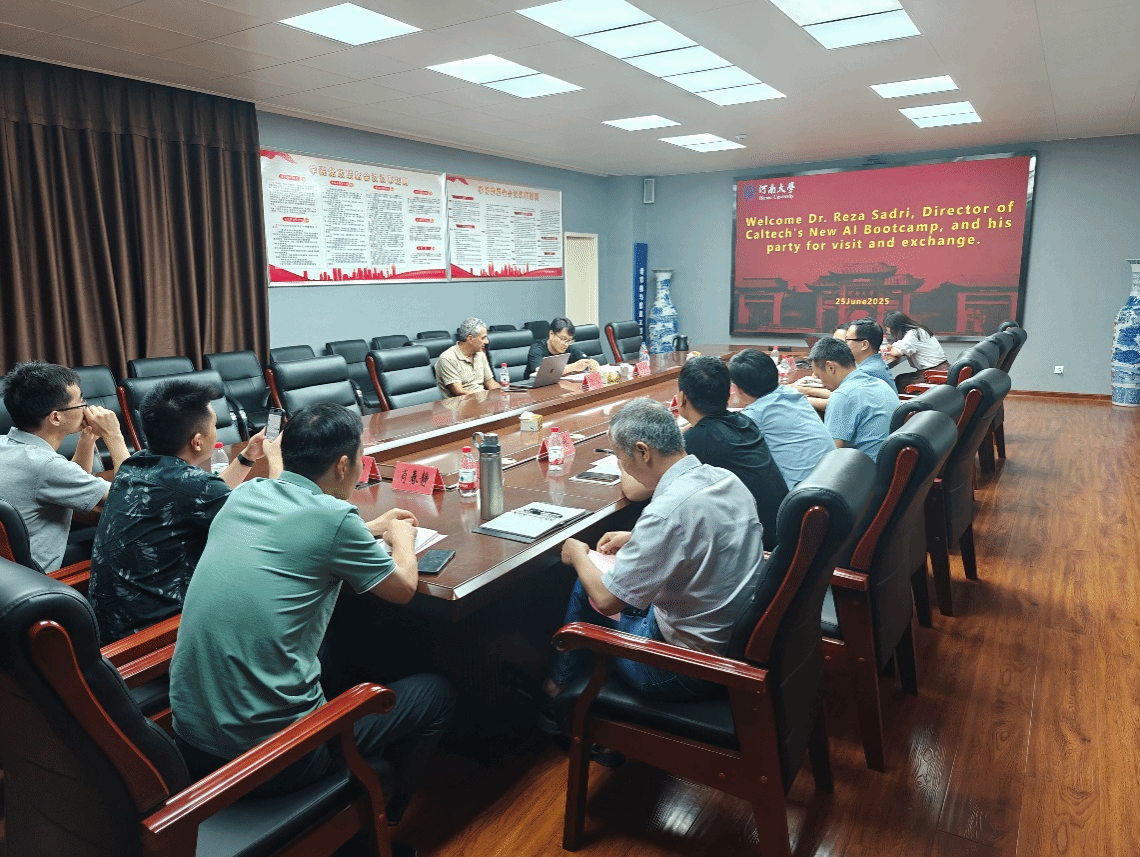 所取得的成绩表示祝贺。他详细介绍了加州理工大学AI Bootcamp项目的基本情况。包括为什么要建立AI Bootcamp,AI Bootcamp的理想人选,AI Bootcamp的长期愿景,AI Bootcamp成立两年以来取得的成就以及全球项目合作情况等多个方面。Reza Sadri博士希望未来双方能在博士、博士后培养,交流互访等方面取得实质性进展。