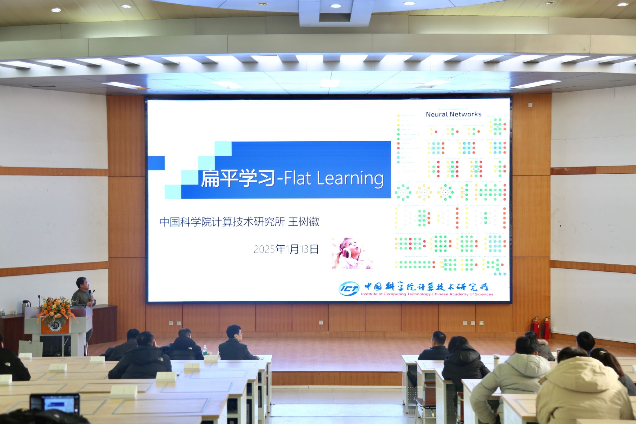 王树徽从神经元连接建模的角度出发,阐述了如何从哈密顿动力学视角将神经元作用关系用路径积分进行建模,提出了扁平学习的神经计算系统规模化构建思想。基于这一理论,他介绍了从深度学习到扁平学习的异构模型转换方法,并在语言、视觉、图等数据模态上成功实现了扁平化模型的训练,进一步将这一理论应用于基础模型的参数微调任务,在多个任务领域,包括文本常识推理、图像分类、图文问答等方面,进行了验证与展示。报告最后,王树徽结合目前的研究已取得的进展,对该理论框架的未来发展进行探讨。