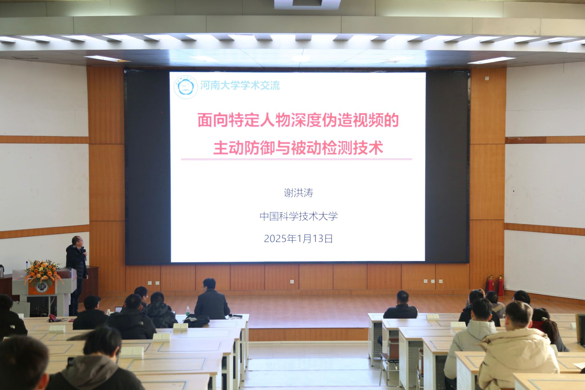 在报告会上,谢洪涛以近年来针对重要军政人物的深度伪造视频问题为例,引出了从主动防御与被动检测两个视角的特定人物深度伪造视频的治理方案。针对主动防御,分别介绍了通用性人脸预处理主动干扰技术和基于解耦的人脸生成过程主动干扰技术;在被动检测方面,则重点讲解了基于图像级不一致性的伪造检测、基于视频级动态不一致性的伪造检测,以及基于时空身份信息蒸馏的伪造检测技术。通过结合实验室的最新研究成果,谢洪涛详细展示了这一领域的技术进展,并探讨了AIGC时代下视觉内容安全的技术发展趋势和未来研究方向。