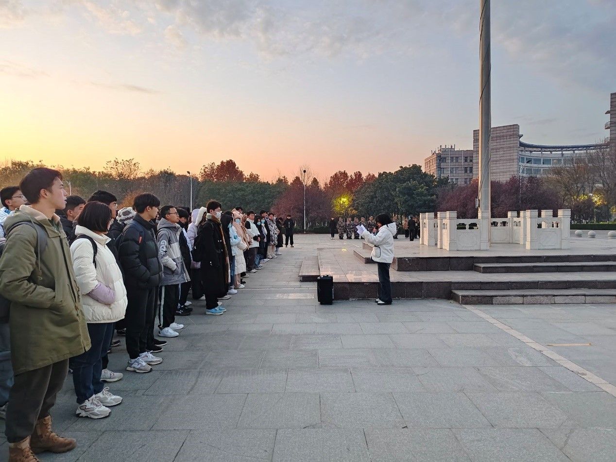 举行了以爱国主义教育为主题的升国旗仪式。仪式由学院团委负责人、2023级辅导员耿梦洁主持,学院党委副书记张大帅、2022级辅导员杜婉莹及学院全体本科生参加了升旗仪式。