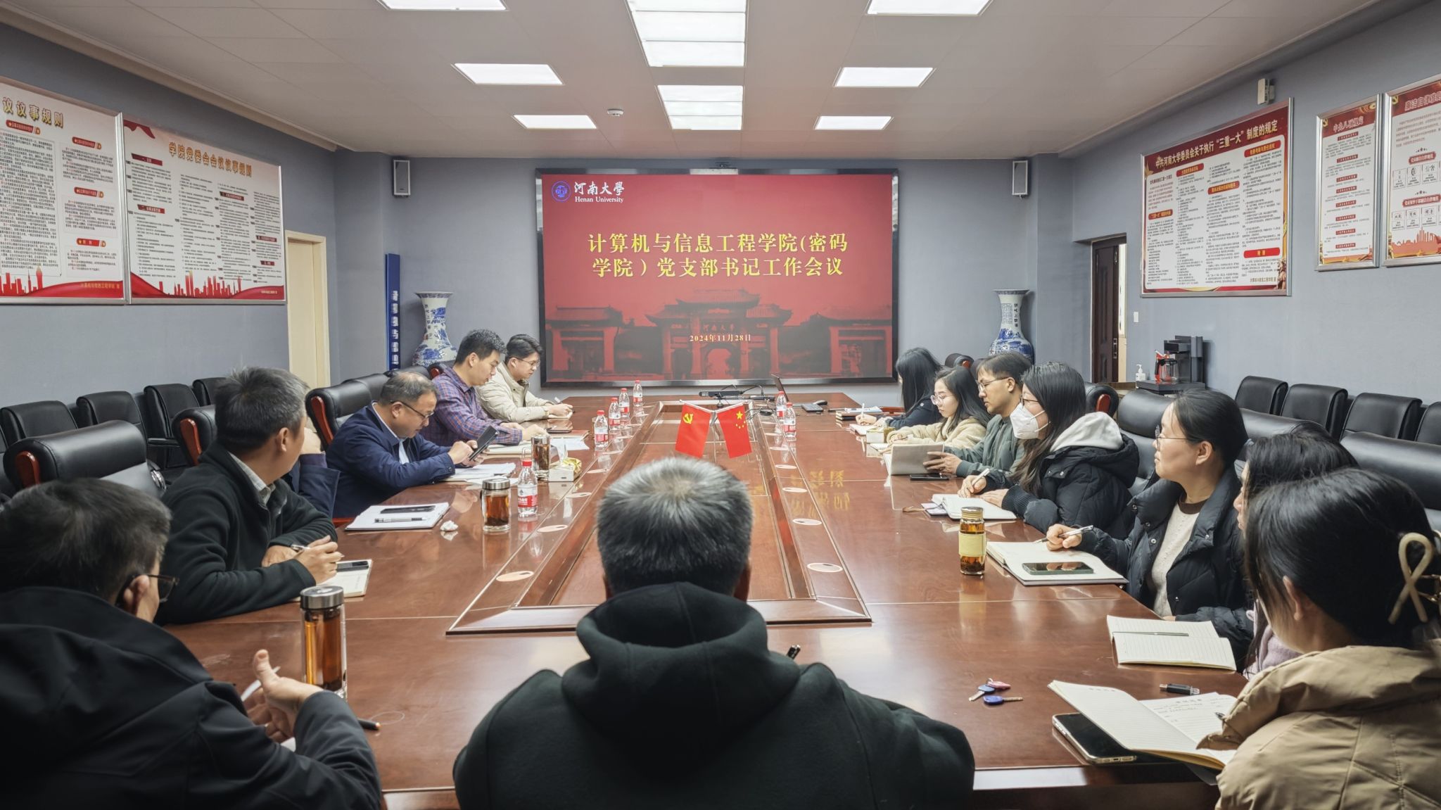 在302会议室召开党支部书记工作会议,学院党委委员、组织员、党委办公室负责人、各党支部书记参会,会议由学院党委副书记张大帅主持。