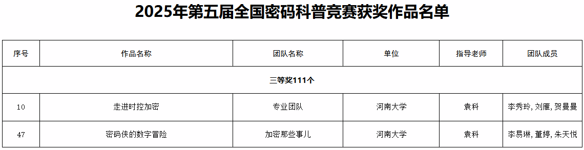 第五届全国密码科普竞赛由国家密码管理局指导、中国密码学会主办,以“知密码、懂密码、用密码”为主题,共吸引全国347支团队、318件作品参赛。经过网络初评、专家与大众联合评审,最终147件作品脱颖而出,风月文学网